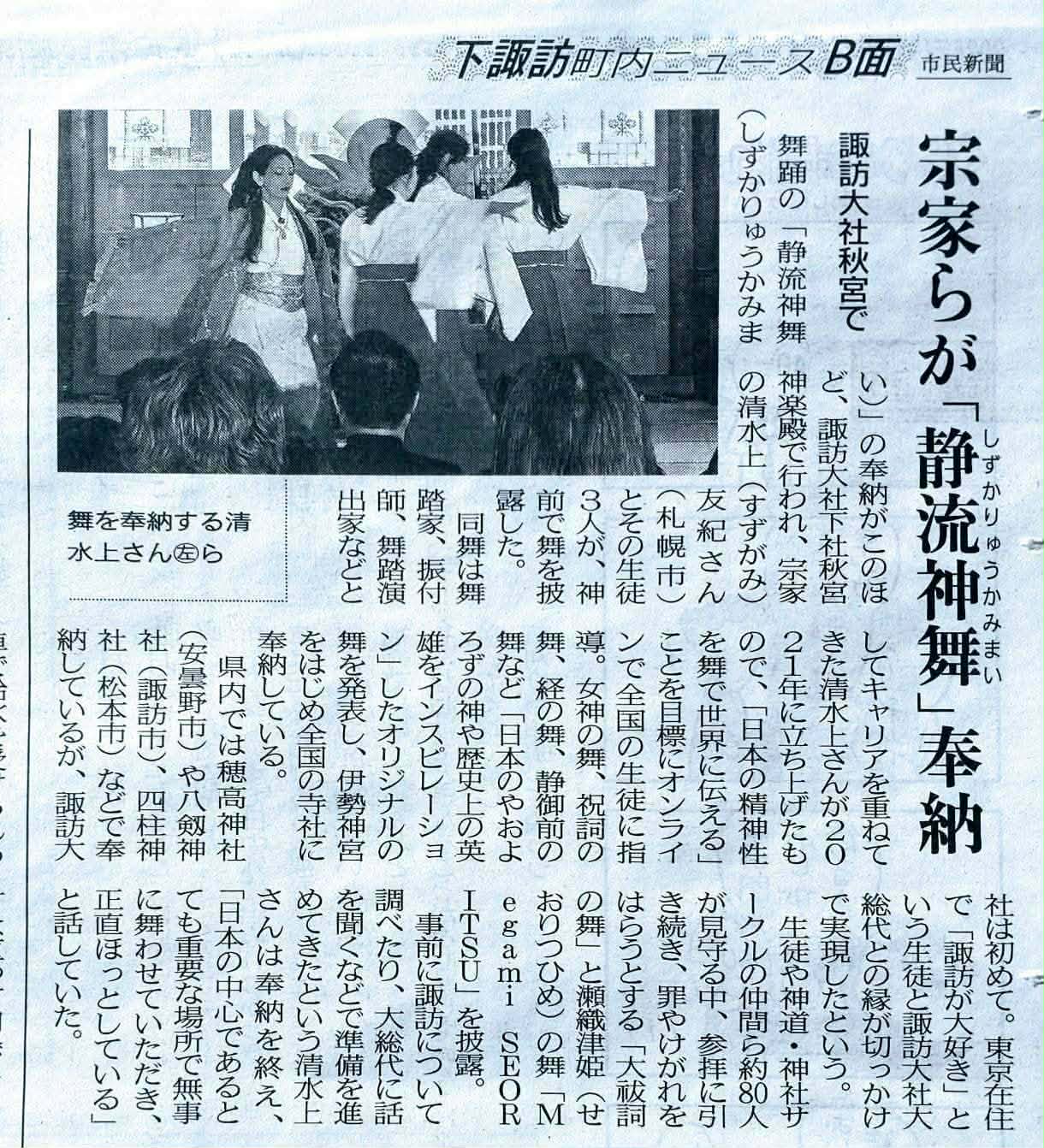 静流神舞では、宗家 清水上友紀や舞姫たちによる神社や仏閣での奉納のご依頼を承っております。奉納について詳しくはL I N Eからお問い合わせください。
